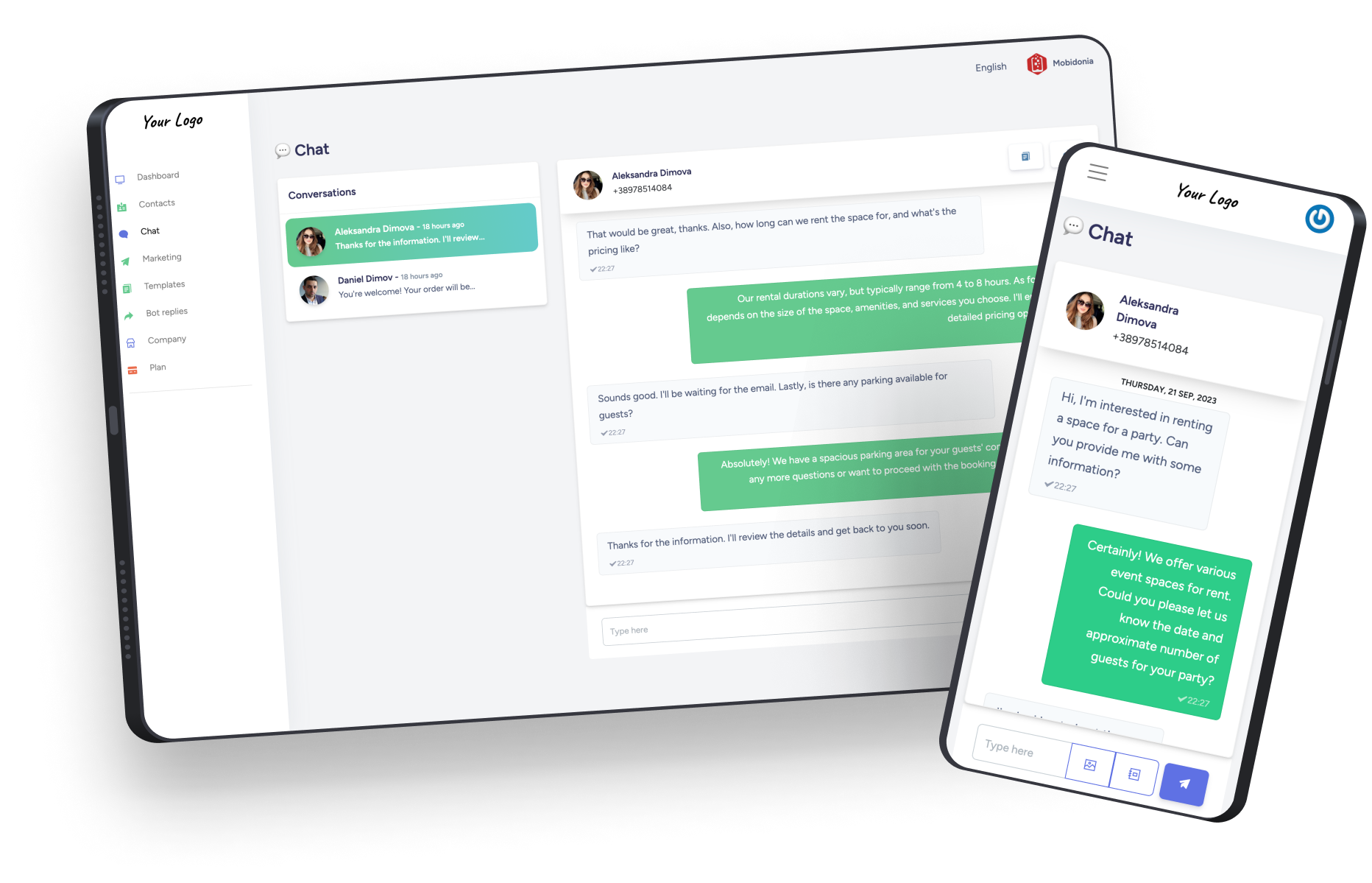 Here, you will find fully featured chat system, from where you can send docs, images, fast replies, and rich message templates. Offer manual and automated support via the reply bot triggered by the client message.